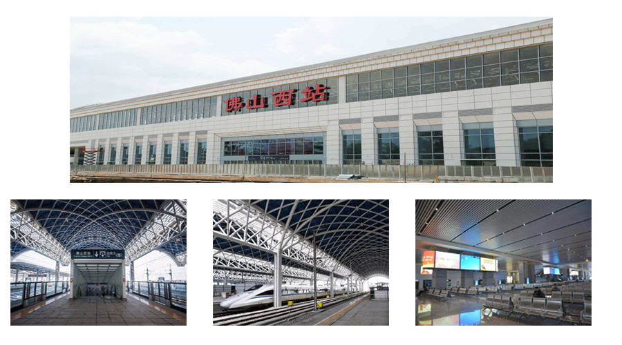 案例詳情:佛山西站采取旅客“下進下出”的方式。全部進出站、侯乘設施都設立在鐵路高架橋下方,設計人員充分利用橋下空間,分層設立進出站通道,節省了旅客進站上車時間。整個工程的裝飾,簡潔大方而不失特性。使用鋁合金做原材料,具有耐腐蝕、抗紫外線、長時間不褪色、重量輕、剛性強等特點,并且鋁本身具有可回收的性質,符合了當代“綠色建筑”的主題。